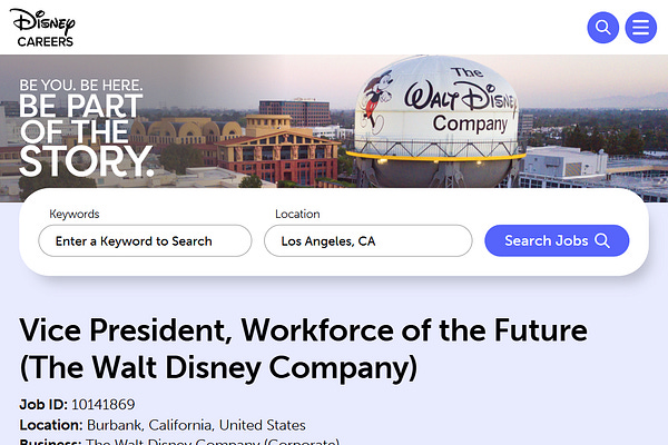 Actual Job Posting - Vice President, Workforce of the Future - The Walt Disney Company