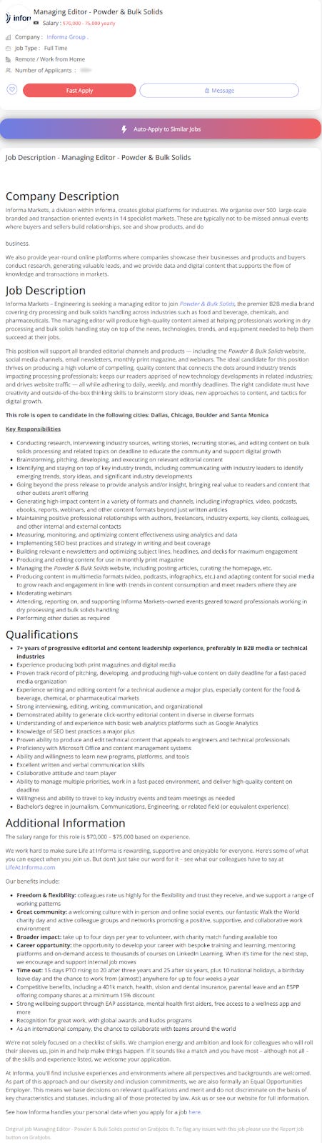 Actual Job Posting - Managing Editor: Powder & Bulk Solids - InformaDoesn't "the premier B2B media brand covering dry processing and bulk solids handling" write itself?thenotworkerNov 20, 2025ShareSubscribe to thenotworker first!Subscribe